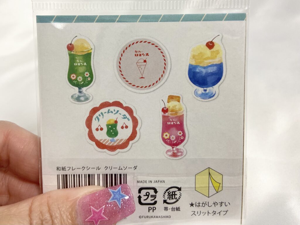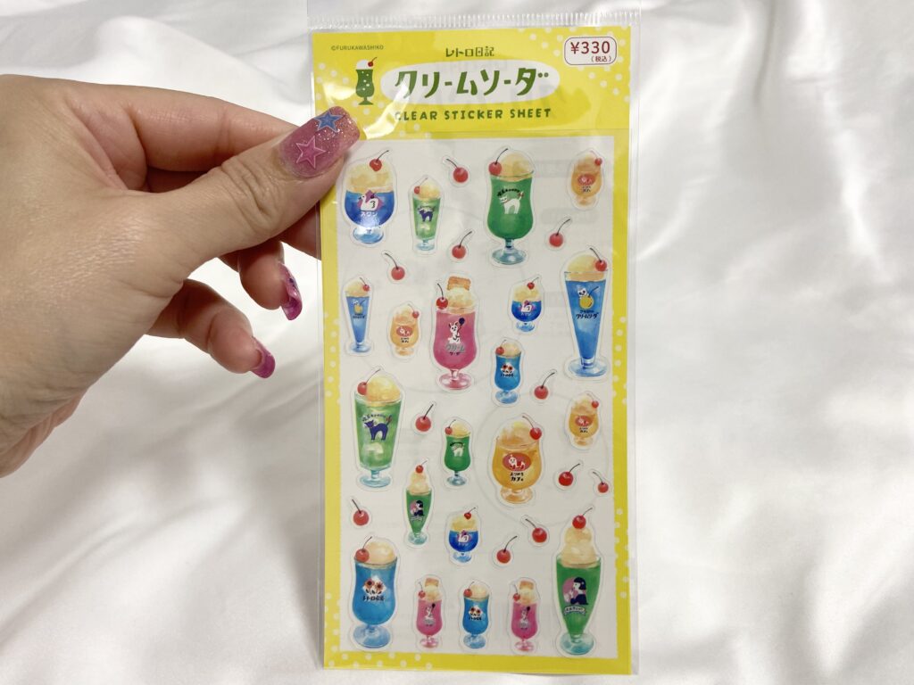 「透明シールシート」(330円/税込)は、カラフルなクリームソーダの透明シールが楽しめるシート。これは大人女子に刺さるデザインです!手帳の隙間などにも貼りやすいサイズ感です。