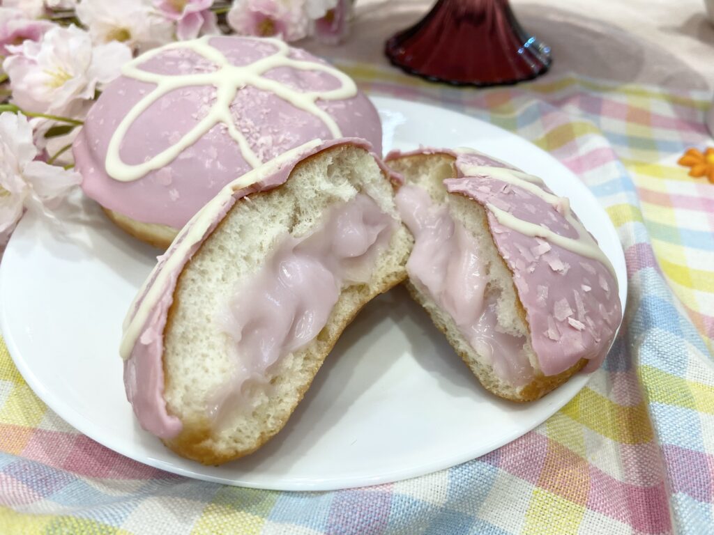 ふわふわの生地の中には春の香りを味わえる甘い桜風味のクリームがたっぷり入っています。