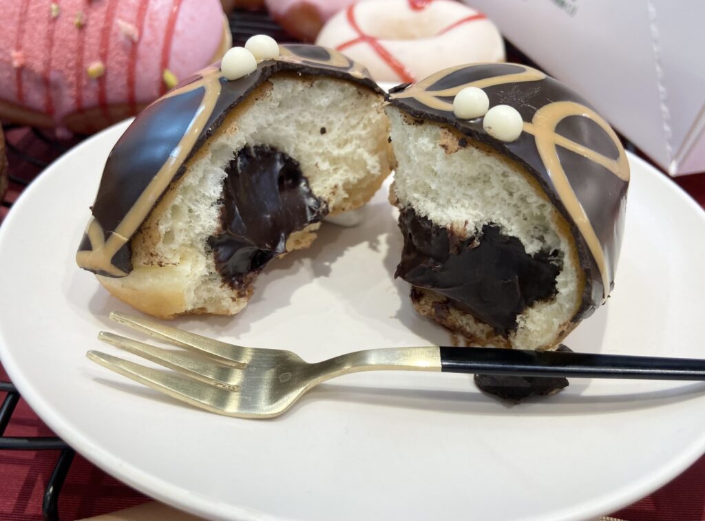 ドーナツの中にはベルギー産チョコ入りのクリームがたっぷり♡レンジで11秒温めると、チョコがとろーりとろけてフォンダンショコラのような濃厚な味わいを楽しめます。