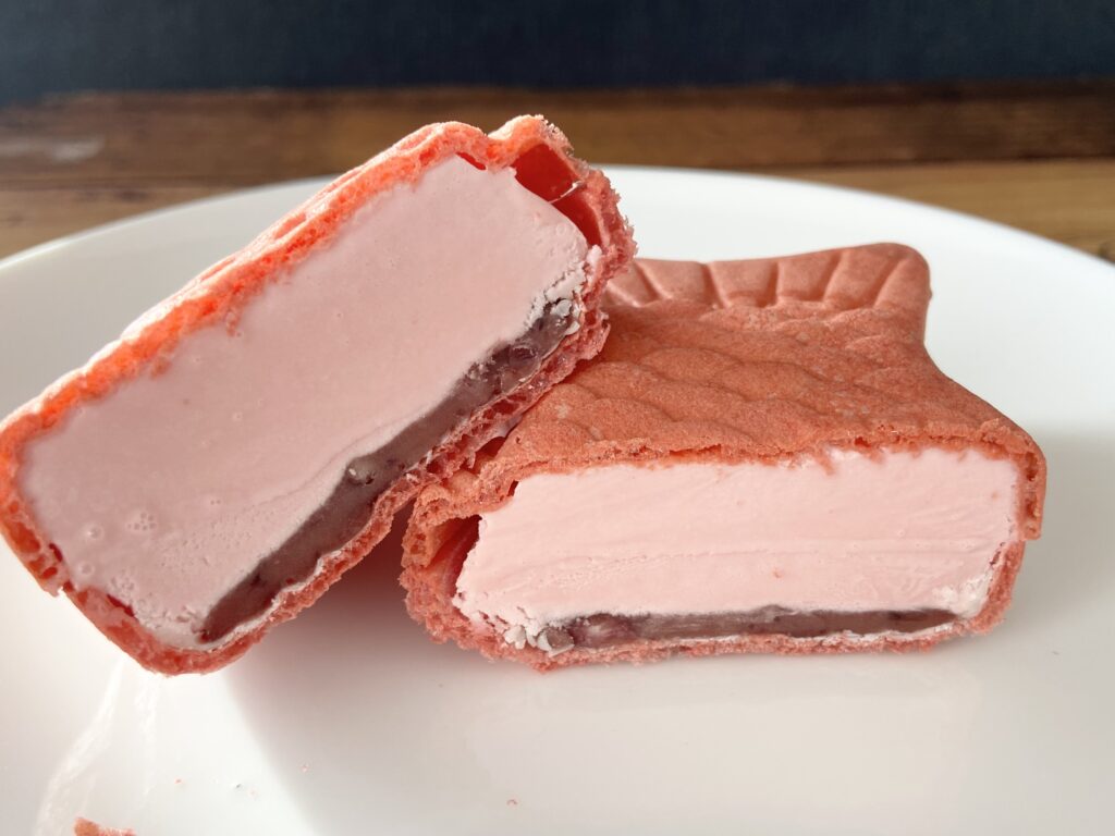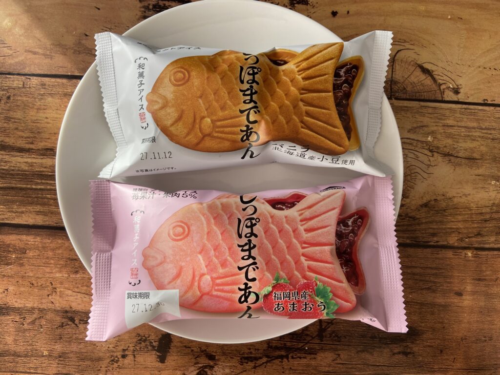 さっそく和菓子アイス「たい焼き最中 福岡県産あまおう しっぽまであん」食べてみた!