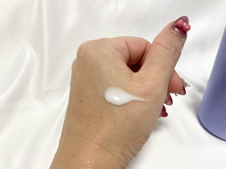 テクスチャーは程よい柔らかさ。水っぽ過ぎず、でも硬すぎず肌になじみやすいボディミルクです。ポンプ式を愛用しているのですが、お風呂上りにサッと使いやすく、ズボラな筆者でも毎日の習慣に取り入れることができています。