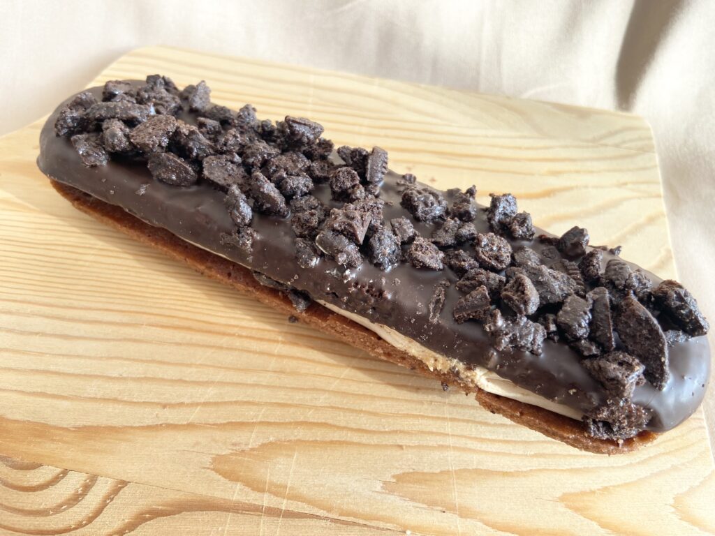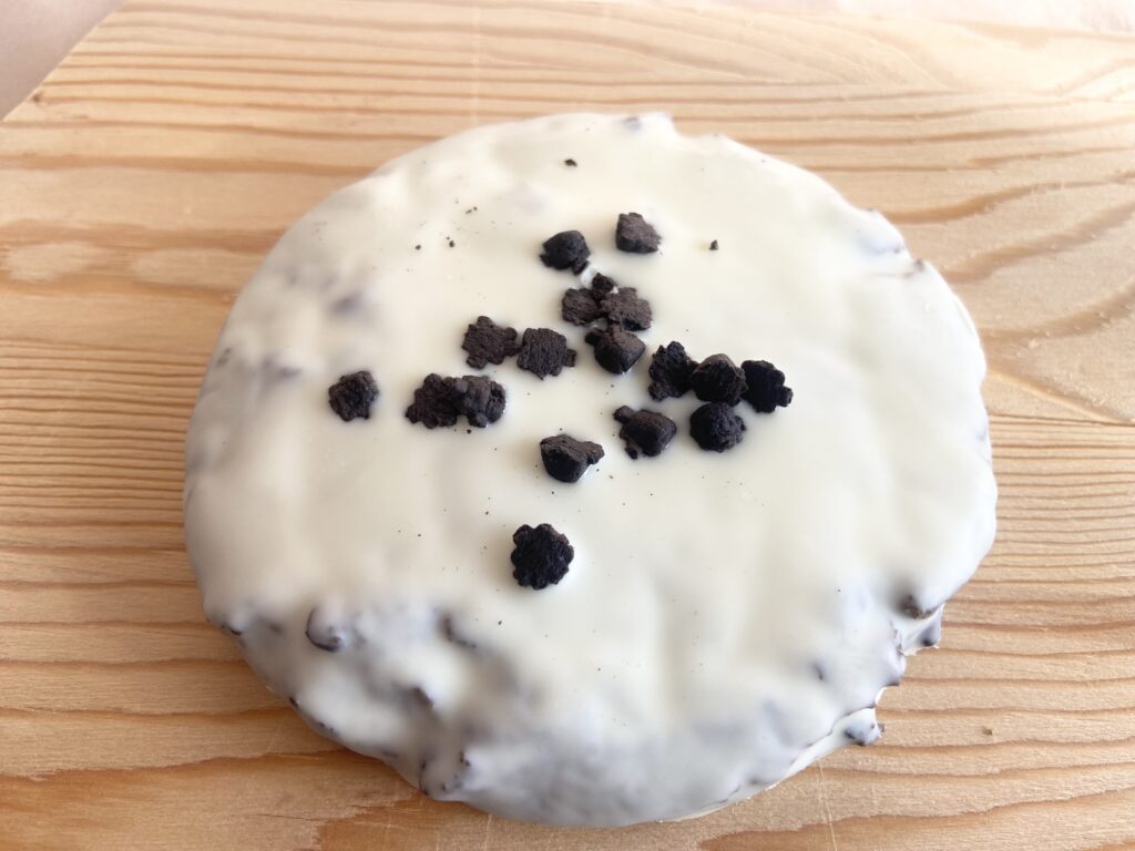 チョコチップとココアビスケット入りのザクザク食感のクッキーにホワイトチョコをかけ、ココアビスケットをトッピング。結構ボリュームのある1枚なのでお腹もしっかり満たされます。