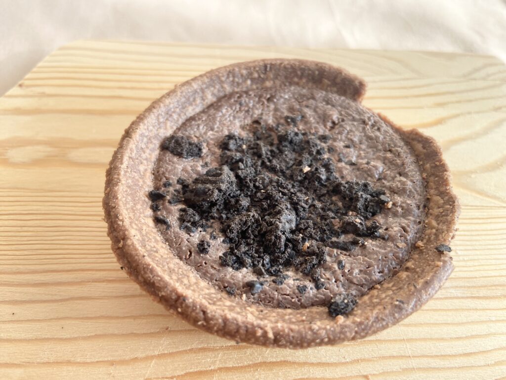 ココアタルト生地に、チョコチップとチョコ生地を入れ、ココアビスケットをトッピングし、焼き上げたサクサク食感を楽しめるスイーツです。