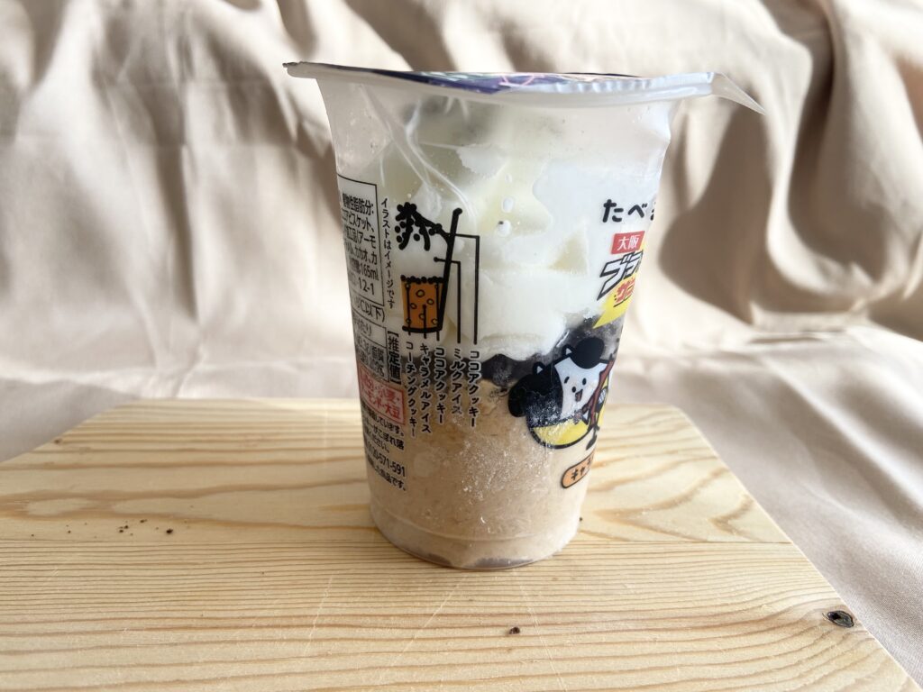 たべる牧場のミルクアイスに、クッキーを混ぜ込んだキャラメルアイスと天面と中間層にココアクッキーを組みあわせた、ザクザク食感が楽しめる一品です。