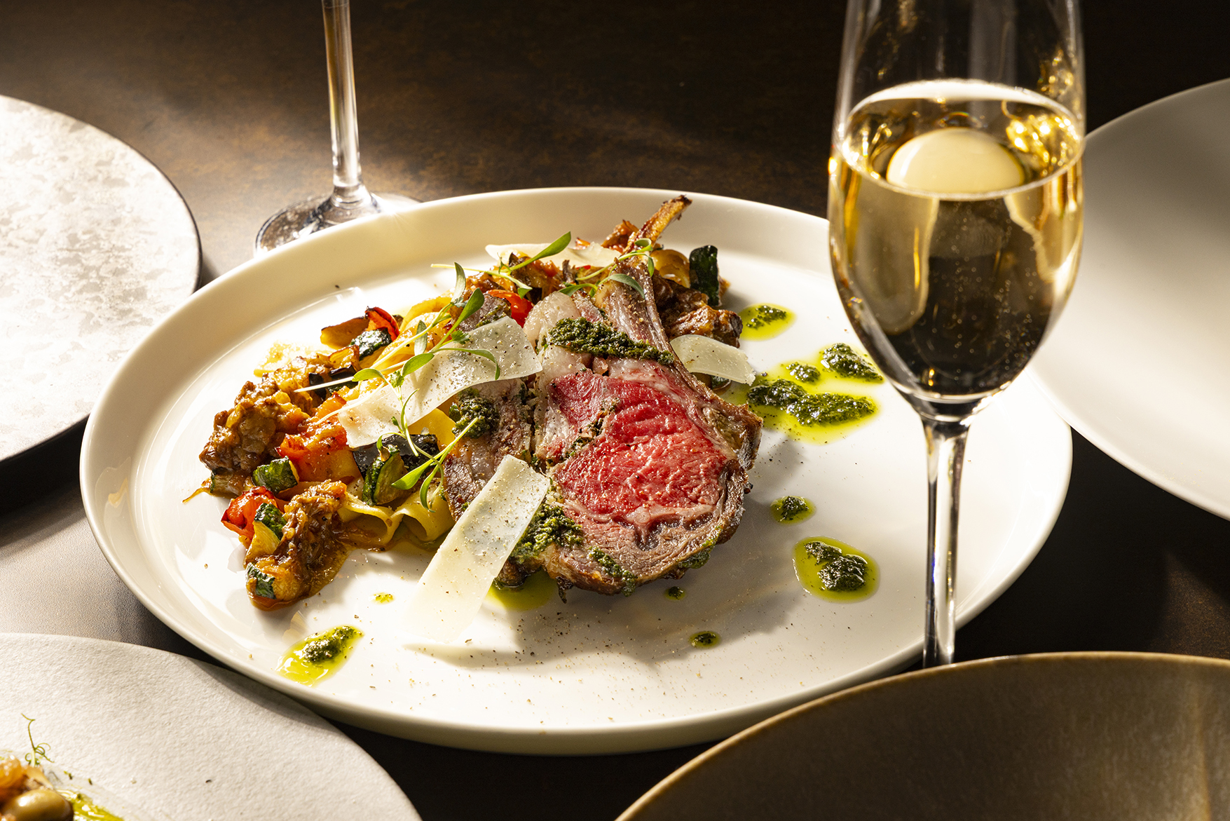 メニューの一部「オーストラリア産マトンポルケッタ」は、オーストラリア産の希少なマトンを、レモン、ローズマリー、ガーリックとともにじっくりローストしたポルケッタ。添えられた幅広の平打ちパスタ「パッパルデッレ」には、ラム肉を煮込み、ズッキーニや、茄子と仕立てたボロネーゼソースを合わせた一品です。ラムバサダーを務めるエグゼクティブシェフ福田が手がける、こだわりのラム料理は女性にうれしい栄養素もたっぷり♡女子会にもおすすめのメニューです。