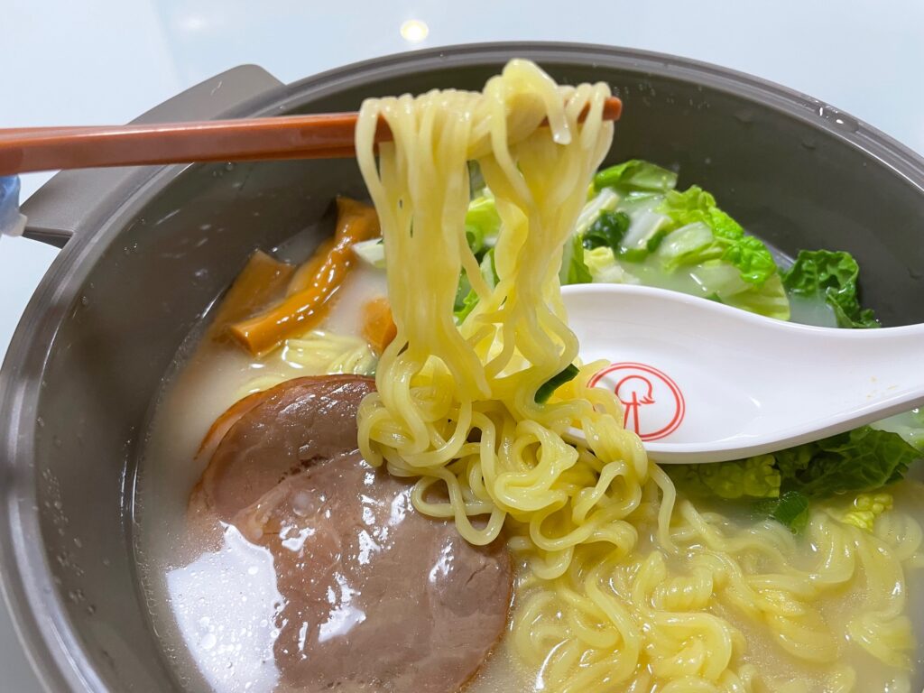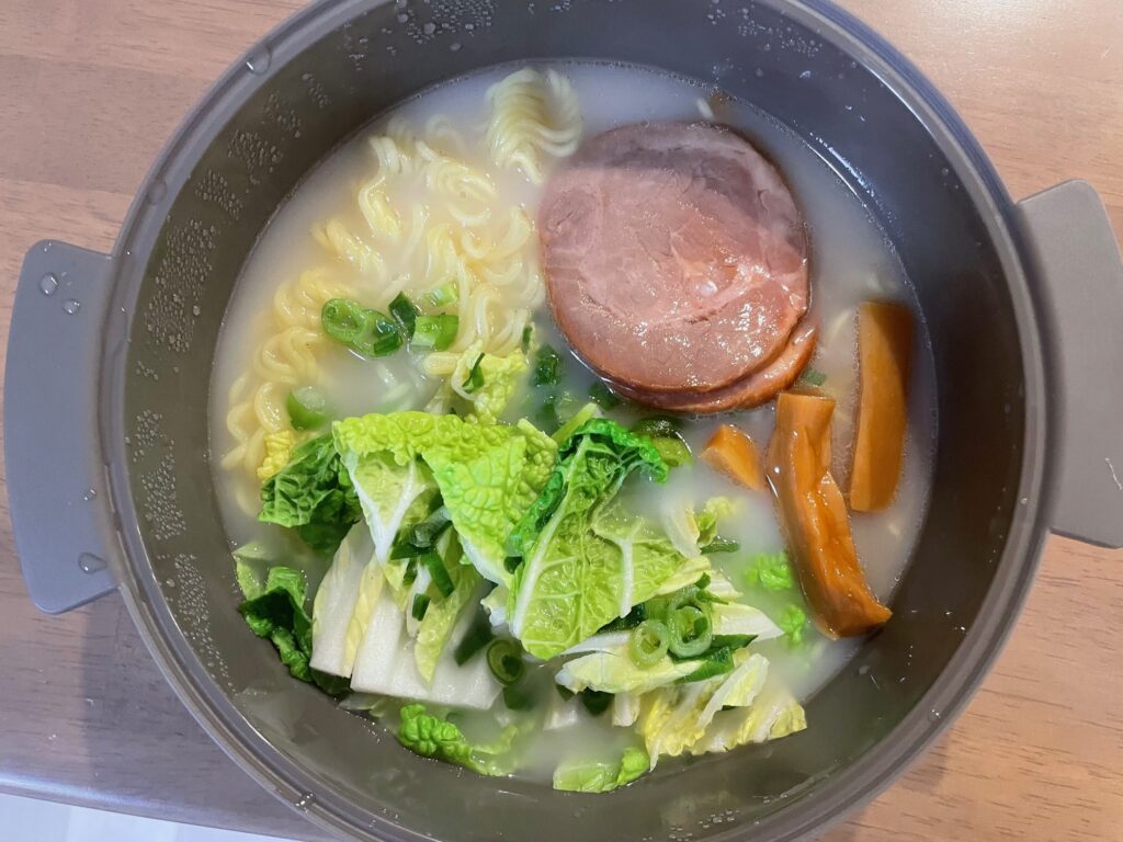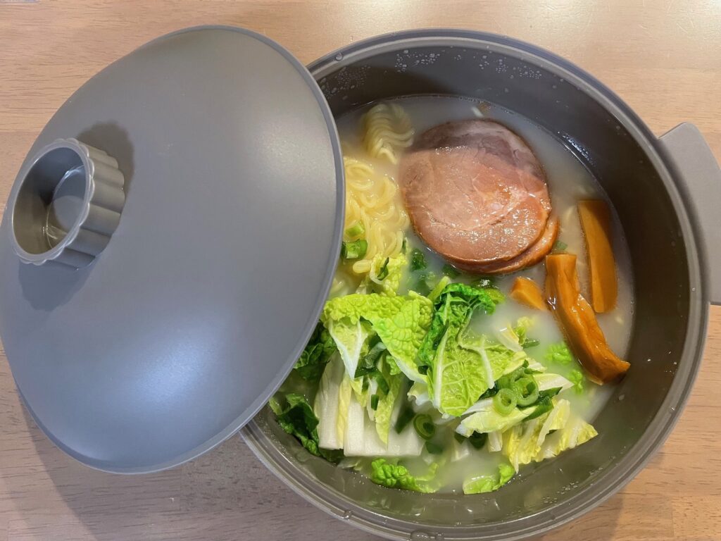 火を使わず、簡単に美味しい袋麺(ラーメン)を作ることができました。器に移し替える必要もなく、このまま食べられるのもうれしいポイント♪野菜は入れすぎると火が通りにくいので要注意です。