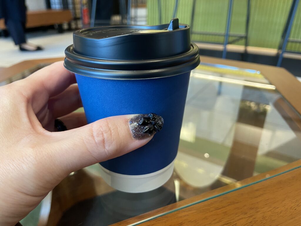 ツアー参加者は、通常とは違う青いカップに入ったドリンクが渡されます。ドリンクを飲みながらホッと一息。