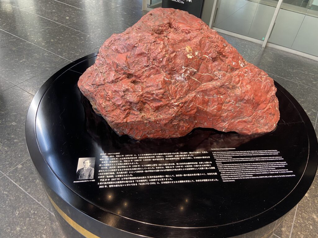 オブジェの近くには「渋沢栄一ゆかりの赤石」も展示されています。この赤石は、渋沢栄一が兜町に邸宅を建てた際に、日本経済の繁栄を祈念した縁起石として設置された石だそう。東京の街の中に、歴史あるものが展示されているのは全く知りませんでした…。