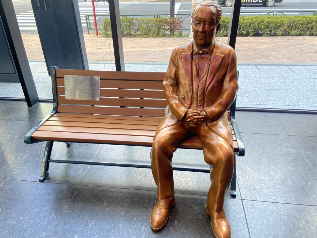 東京メトロ東西線「茅場町駅」直結のビル『KABUTO ONE』の1階アトリウムには、兜町とゆかりの深い人物「渋沢栄一」の一等身大オブジェが設置されています。