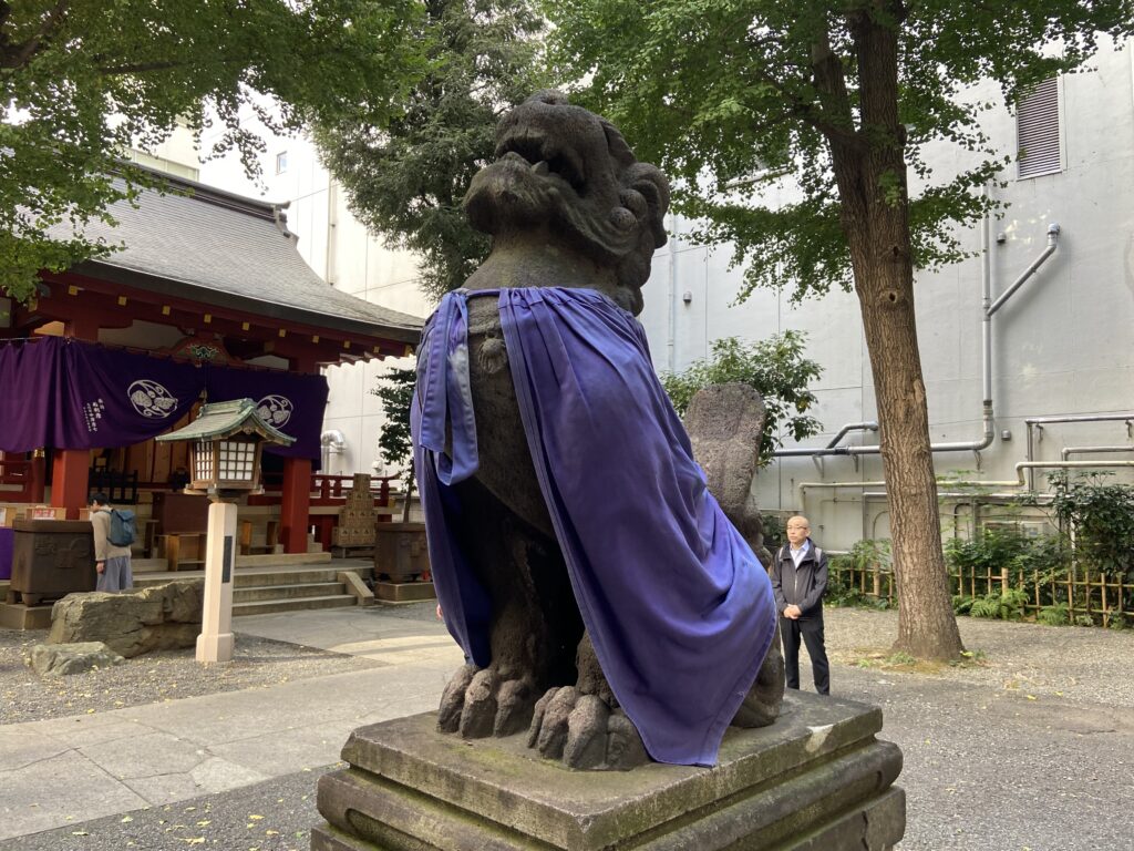 運気上昇上向き狛犬は日本橋日枝神社の特徴のひとつ。