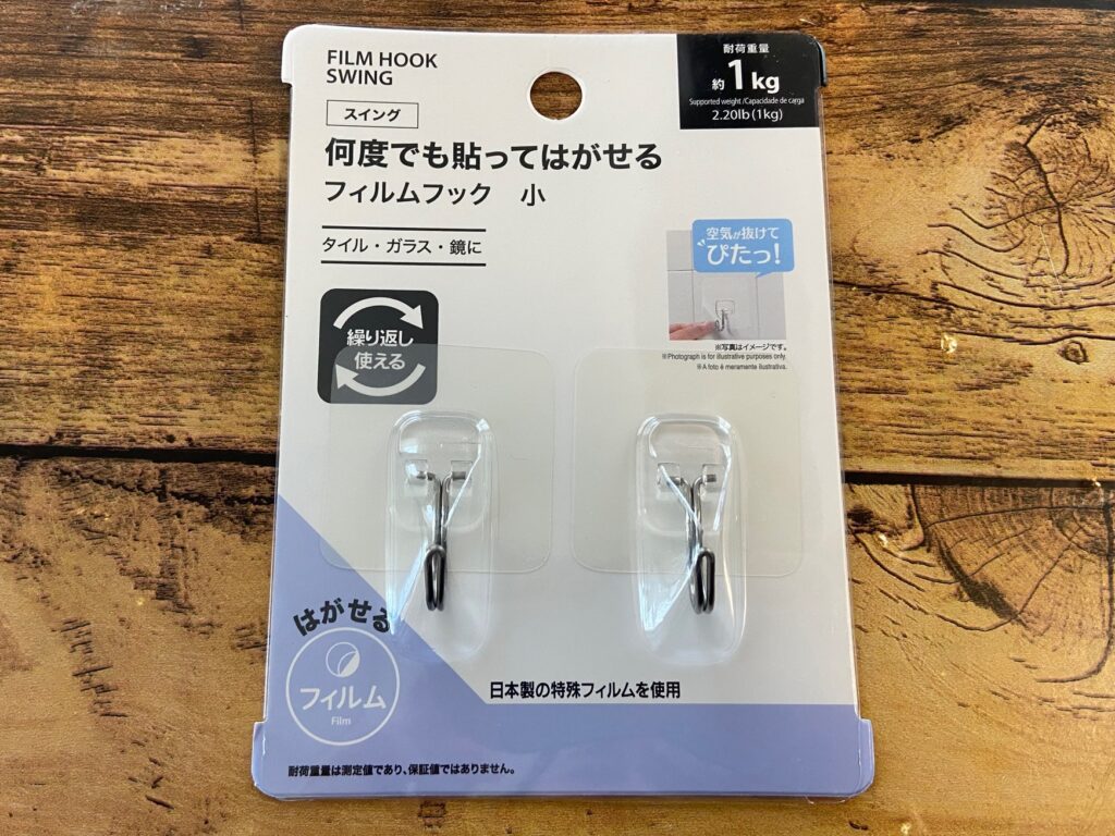 ハンドルは、DAISO「何度も貼ってはがせるフィルムフック」(110円・税込)を使用してコンパクトに収納しています。