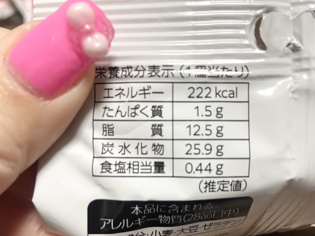 栄養成分表示(1個あたり)は以下のとおり。