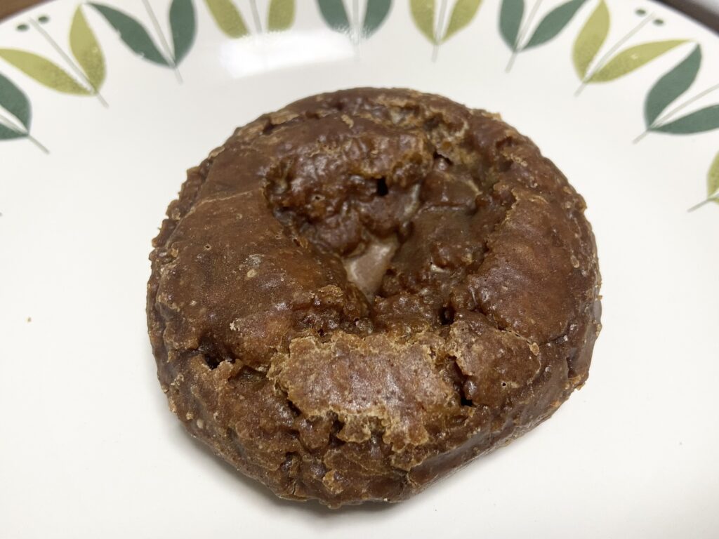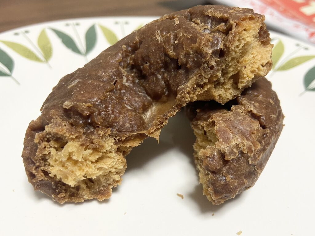 「駅ドーナツ」は、塩バターキャラメル味。開封してみるとかりん糖のような見た目のドーナツが登場!想像したよりもずっしりとした印象です。
