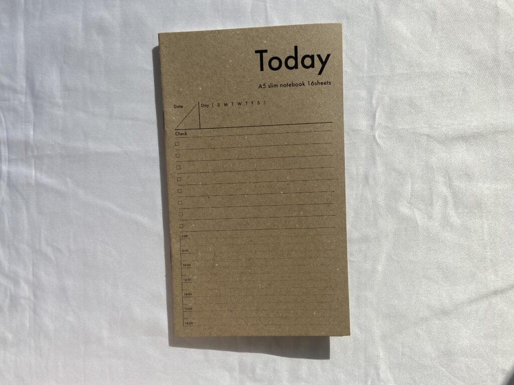 「トゥデイノート」(110円/税込)は、プランニングノートよりも細かく記入する項目が設定されているノート。ジャーナリングやセルフプランニングをはじめたいけれど何を書けばいいかわからない…という、初心者さんに特におすすめです。