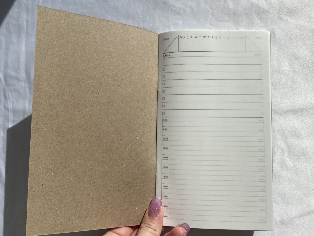 ノートは1ページ1日分、ToDOリストと時間ごとにスケジュールを記入できるデザインです。家事や育児に仕事に…と、やることがいっぱい、スケジュールが分刻みで忙しい人は、大体の時間を記入しておくことで、慌てずにタスクをクリアできますよ。