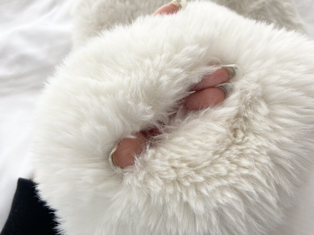 今季は従来品と比べて表面のふわふわ感をより出すために起毛加工が施されていて、起毛加工により風合いや肌触りがより良くなっています♡