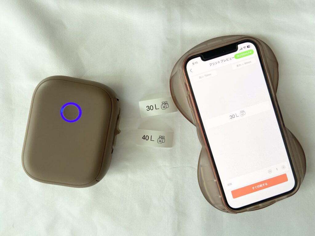 本体のサイズは約幅7.4×奥行き9×高さ3.5cmと手のひらサイズでコンパクト。収納場所も最小限でOKです。ラベルプリンターって結構大きいイメージだったのですが、このサイズ感なら手に取りやすいですよね♪