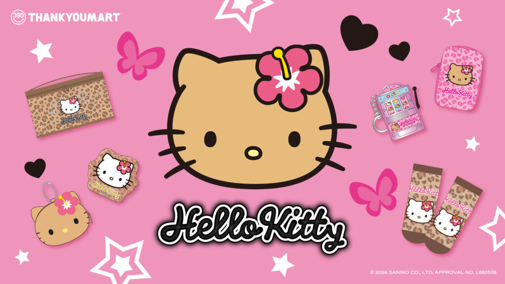 プチプラでトレンドアイテムが揃うサンキューマートから、平成ギャルをイメージした「ハローキティ」の限定アイテムが登場します。どこか懐かしいのに今っぽい♡「日焼けギャル風キティ」が可愛すぎると、早くも話題になっています。しかも価格は全品429円(税込)。これは見逃せません…!