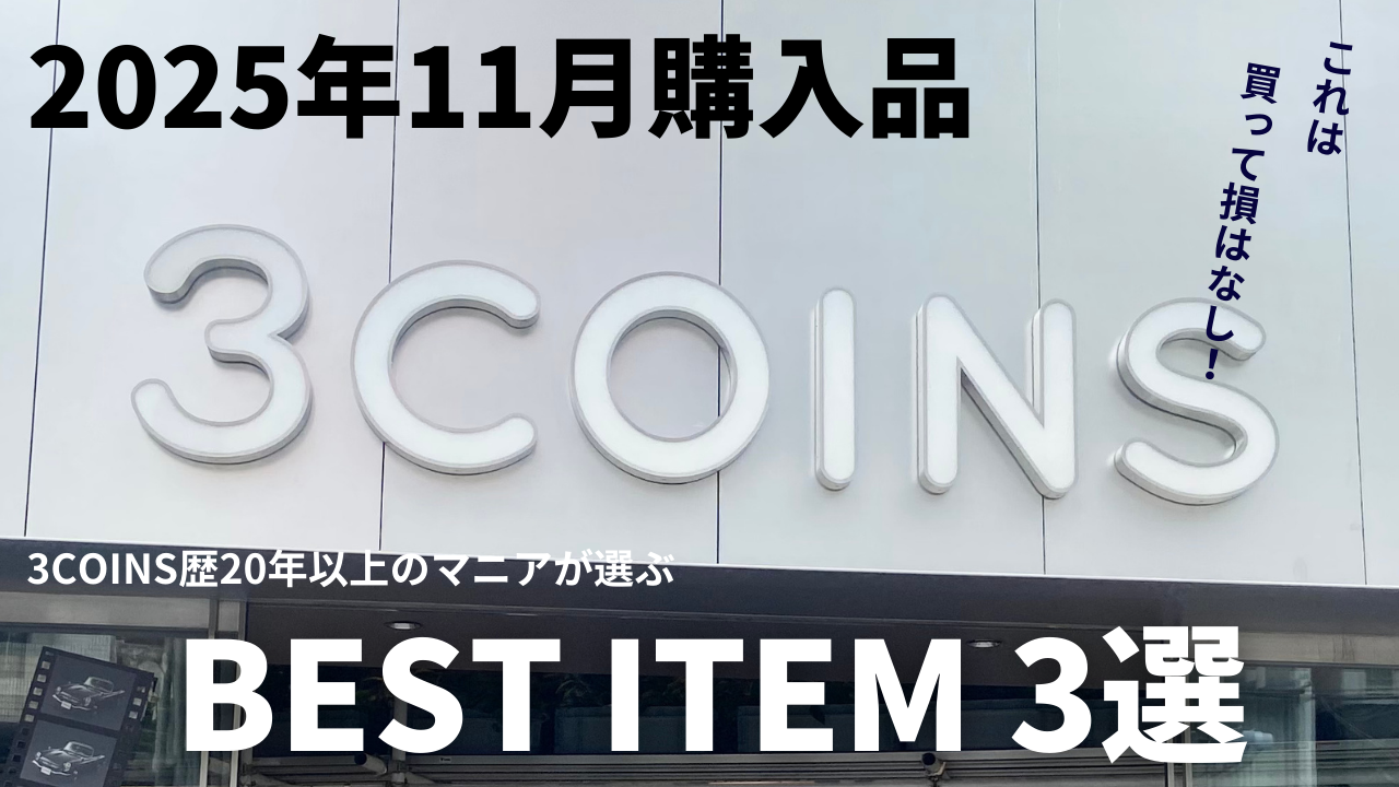 毎週3COINS(スリーコインズ)をパトロールするのがルーティン!3COINS歴20年以上のマニアでもある私、まるやまひろこが2025年11月に購入したアイテムの中から特にときめいたのベストアイテムを3アイテム厳選してご紹介します。