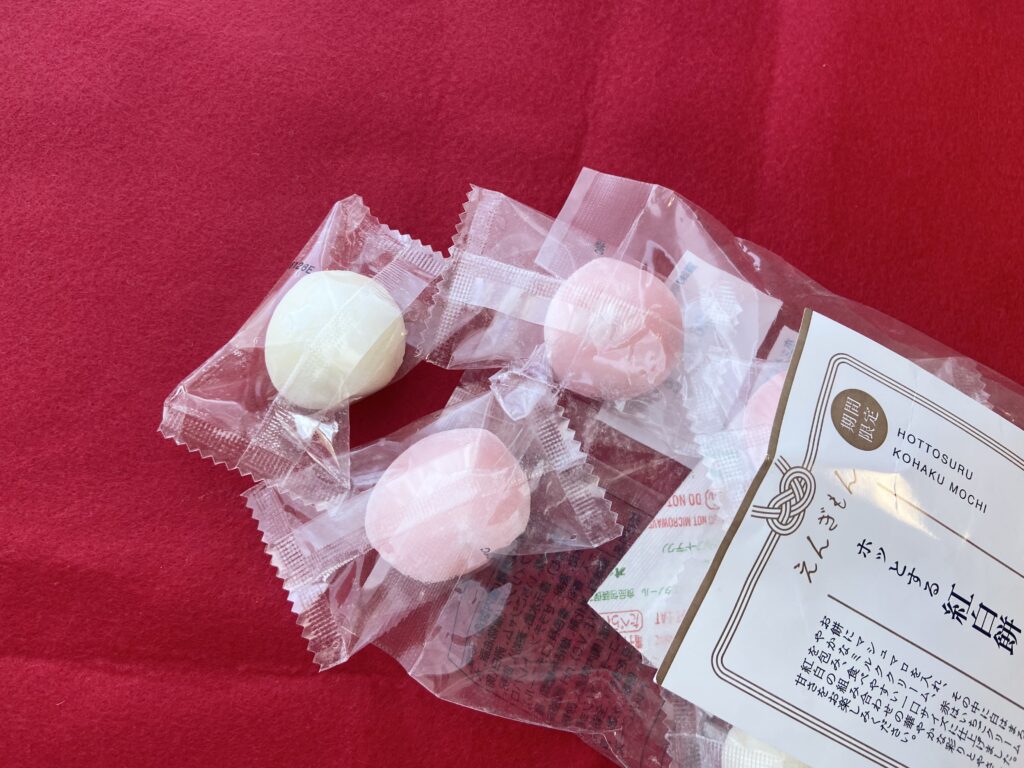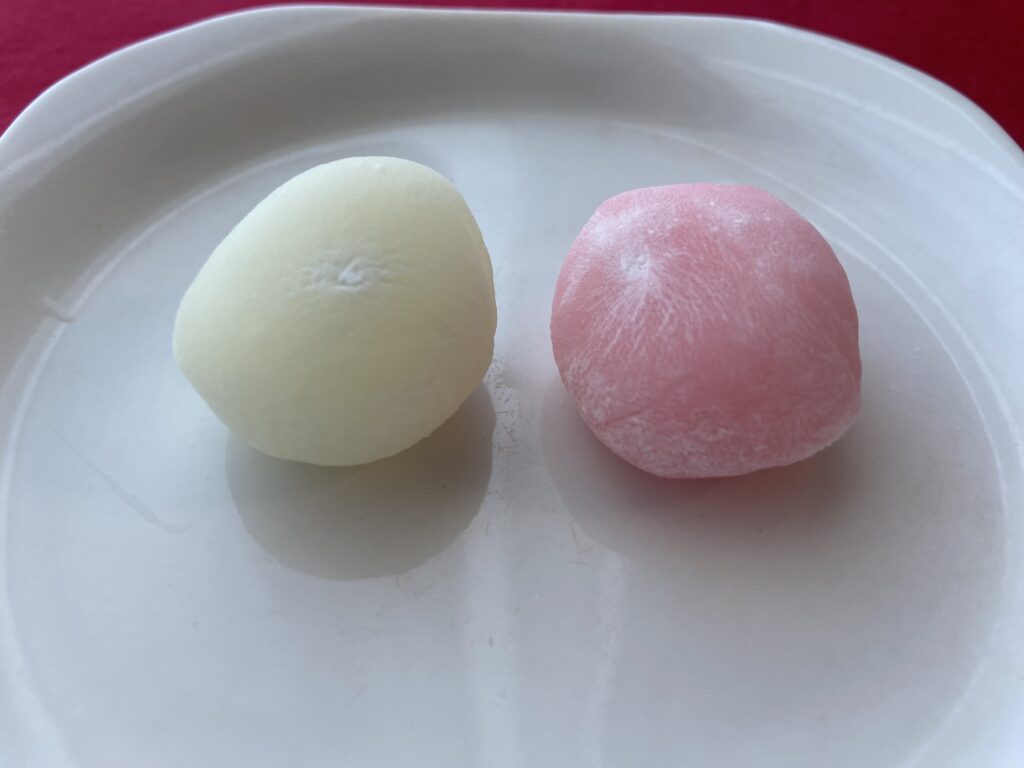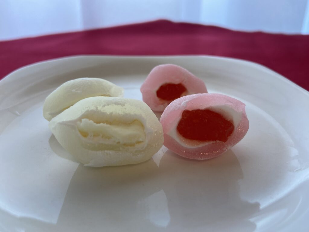 紅餅は、ひと口食べると口の中にいちごの風味が広がります。白餅よりも味がしっかりしていて、満足度も高め。甘いスイーツが苦手な人は白餅の方が好みかも。