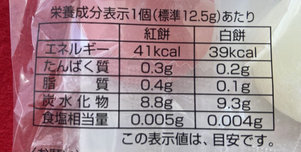 栄養成分表示1個(12.5g)は以下のとおり。