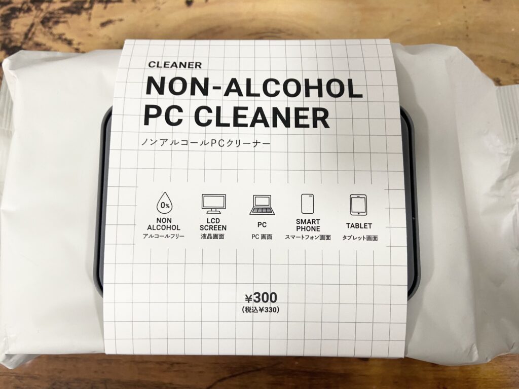 「ノンアルコールPCクリーナー」(330円・税込)は、優しいノンアルコール仕様で、デリケートな液晶画面にも最適なクリーナーシートが100枚入っています。液晶画面やPC画面、スマートフォンやタブレットなどの画面のホコリや指紋などの汚れを落としてくれますよ。