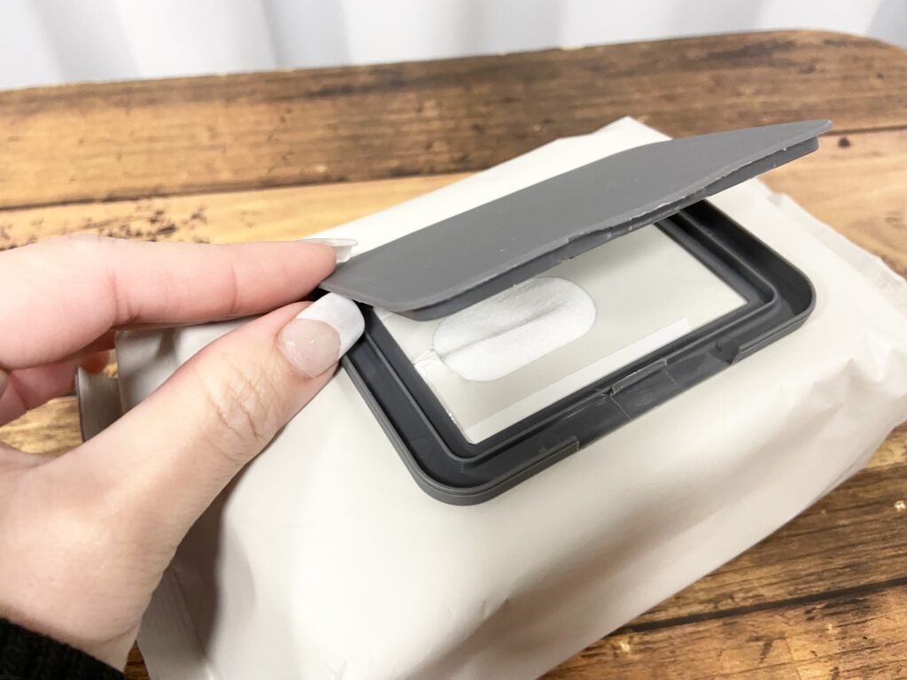 「ノンアルコールPCクリーナー」には、クリーナーシートの乾燥を予防するため、取り出し口には蓋が付いています。