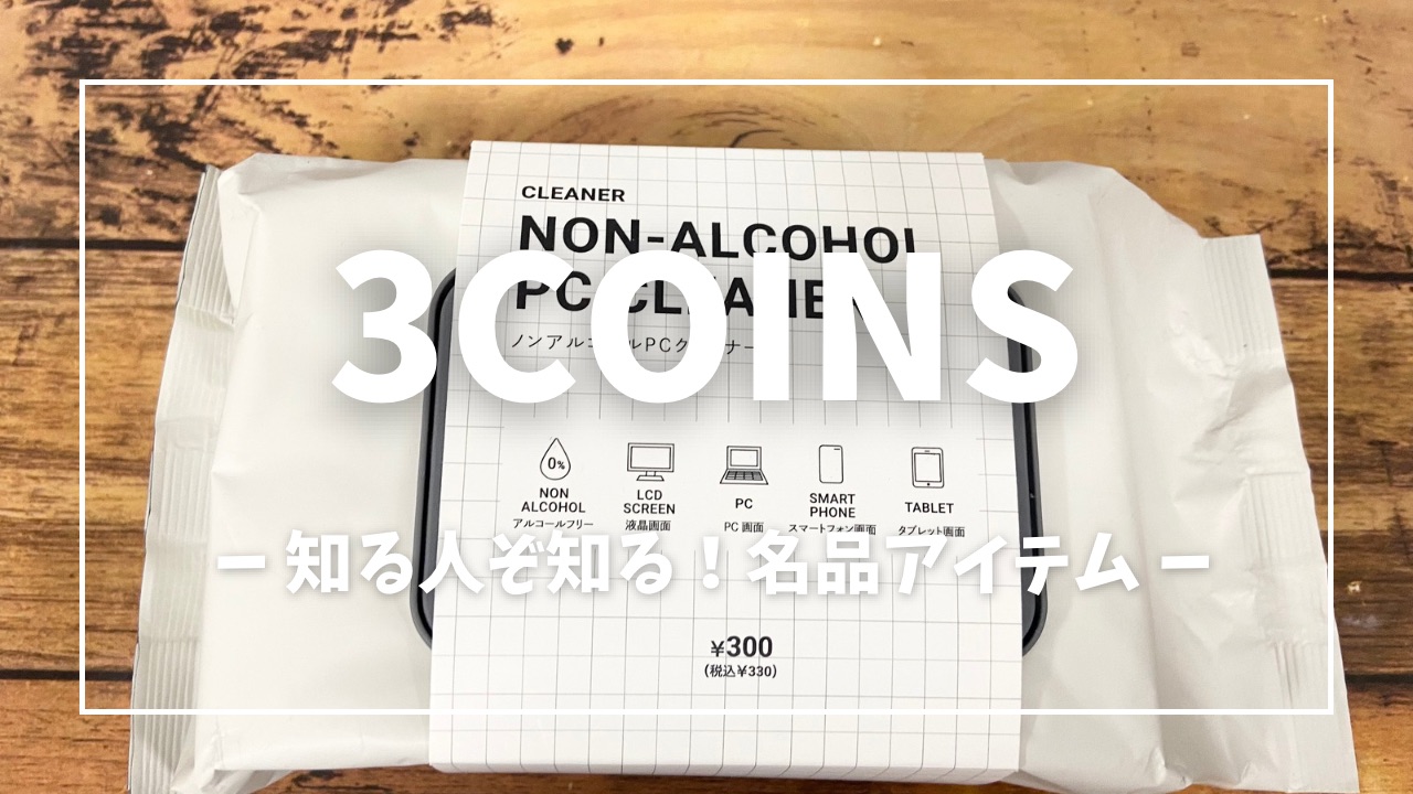毎週3COINS(スリーコインズ)をパトロール!3COINS歴20年以上のマニアでもある私。3COINSには知る人ぞ知る隠れた名品がたくさんあります。今回は、スリコマニアの私がおすすめする隠れた名品「ノンアルコールPCクリーナー」をご紹介します。