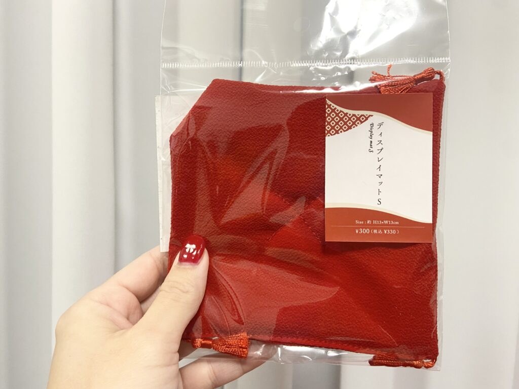 同時発売の「ディスプレイマット」330円(税込)もあわせて購入。鏡餅の下に敷くために購入したのですが、あるのとないのでは結構印象が変わります。ほかのお正月飾りにも使えるので持っておいて損はなし!