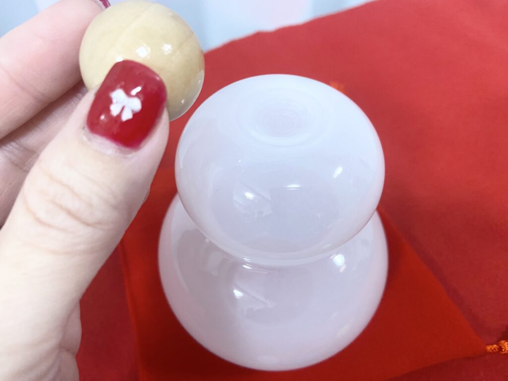みかんの代わりの木のボールは、鏡餅のくぼみがあるので意外と安定します。