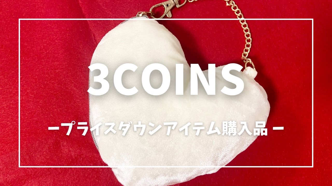 3COINS(スリーコインズ)では、毎週木曜日にプライスダウンアイテムが更新されます。欲しかったアイテムや気になっていたアイテムがお買い得にゲットできるかもしれないプライスダウンアイテムは見逃し厳禁!今回は、70%オフのプライスダウンアイテム「チェーン付きベロアハートポーチ」を毎週3COINSをパトロール!3COINS歴20年以上のマニアライター・まるやまがご紹介します。