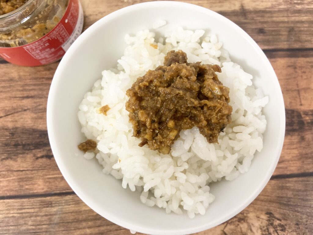 すでに紹介している「鯖明太」や「明太舞茸」よりも少し水分量が多い印象。見た目以上にピリ辛度も高く、たくさん食べると子どもはびっくりしちゃうかも…。おにぎりの具材には少し不向きなので、お家で食べるお米のおともにどうぞ!
