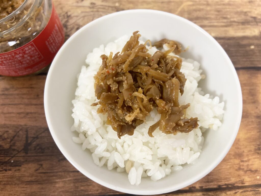 歯ごたえのある舞茸の食感を感じつつも、明太子が作り出す海鮮の風味が口の中に広がる贅沢な一品。少し辛いですが、子どもでも食べやすい印象です。こちらも味が濃いので、ほんの少しでもごはんが進む!こちらも我が家ではおにぎりの具材として使用する事が多いです。