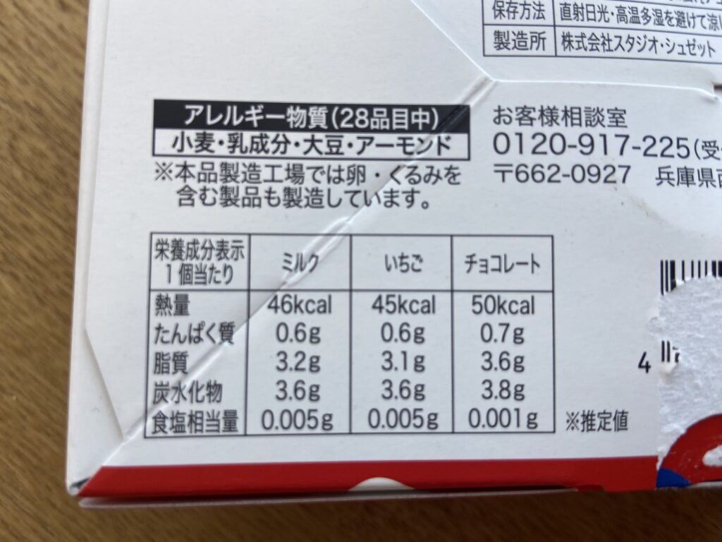 1個当たりの栄養成分は以下の通り。