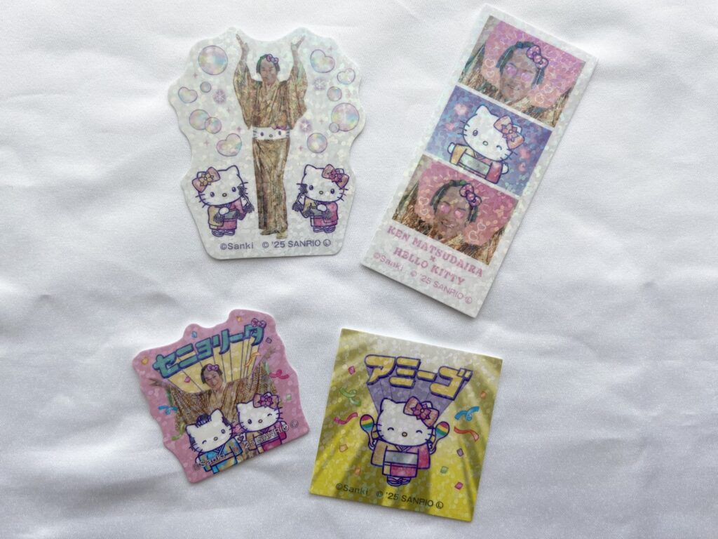 2025年12月26日(金)からは、平成ギャルをテーマにした、ファミマ×マツケンサンバ×ハローキティの豪華トリプルコラボグッズも登場!松平健さんとおそろいの着物をまとったハローキティーのオリジナルグッズはここでしか手に入らないのでファンは見逃し厳禁です。