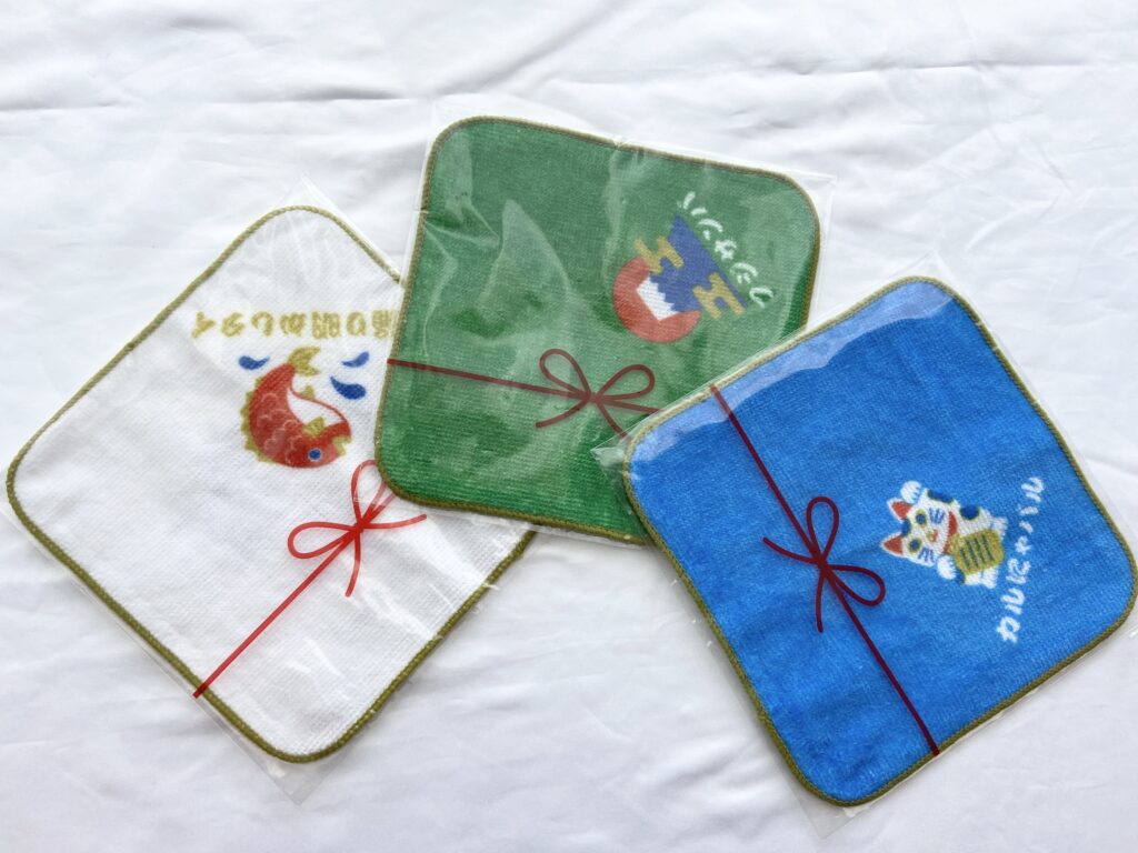 対象商品を2個同時に買うと貰える「おめでたいデザインのタオル」・「ハンコ」