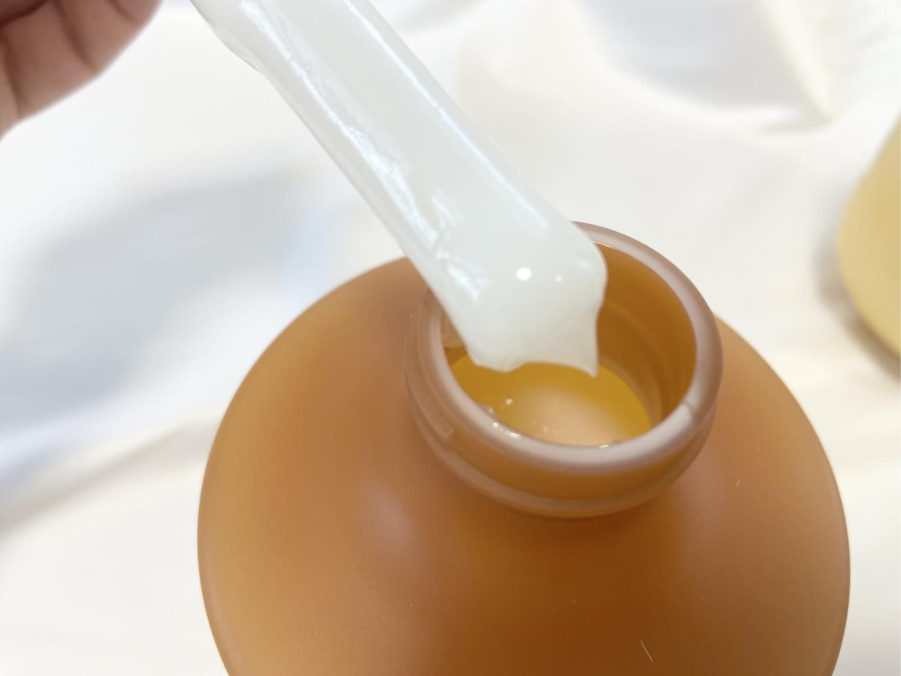 脂質の流出を制御できる『ラメラ液晶シャンプー』を採用しています。とろみのある美容液のようなテクスチャー。