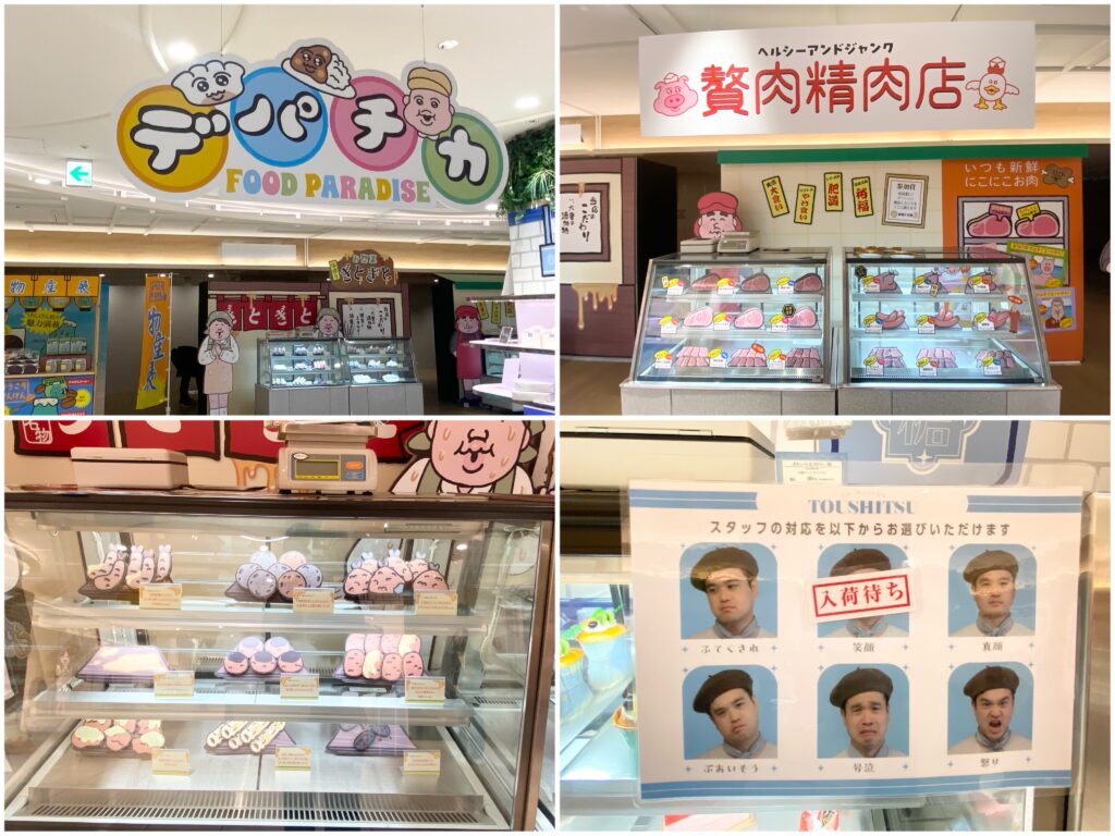 デパートといえば欠かせないデパチカエリアでも「可哀想に!」ワールド炸裂!ダイエットした肉が売っている精肉店やスタッフの対応を選べるスイーツ店など、見れば見るほど面白さが増すデパチカを体験できます。