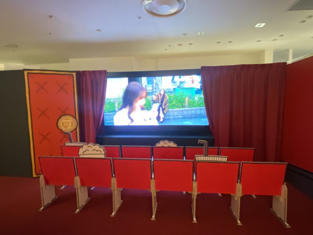 シネマコーナーでは、「可哀想に!」初の実写作品を体験。実写映画の予告風の動画が流れています。ありそうでない、映画予告はついつい笑ってしまいます。